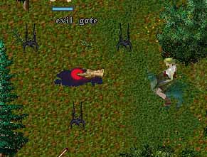 Tコーブのオーク砦へ行くと、Ken の死体は朽ち果てぎみになってました。赤くうねっていた Evil Gate は 水色になり安定しているっぽですね。