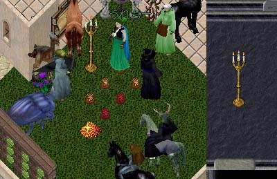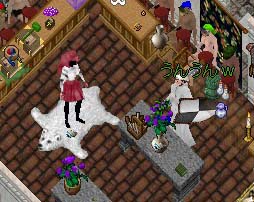 先日、ワーにアカを一つあげたので、戦士を作った訳ですがどうせならうちのギルドに入れようって ことでギルド石へ行く。ワーはUOのことは全然詳しくないので、ふと悪戯を思いつく。